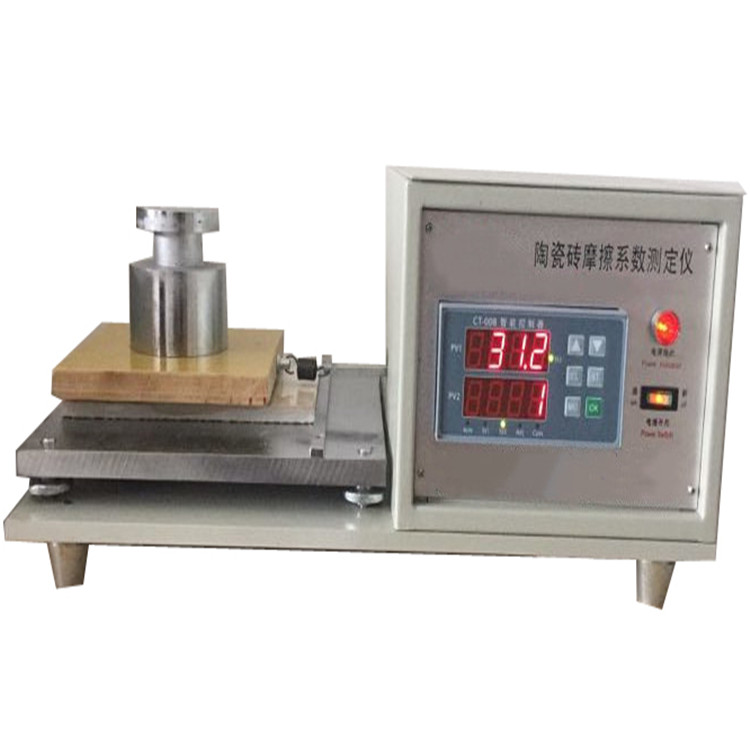 產品特點: ZB-553型瓷磚摩擦係數測定儀采用微電腦測力控製儀和高精度拉力傳感器組成測力係統,具有測力精度高,性能穩定,自動顯示測試結果,可循環顯示拉力和磨擦係數值等特點。符合GB/T4100-2015標準,方法B靜滑塊法,是陶瓷地板磚磨擦係數測定的理想設備。