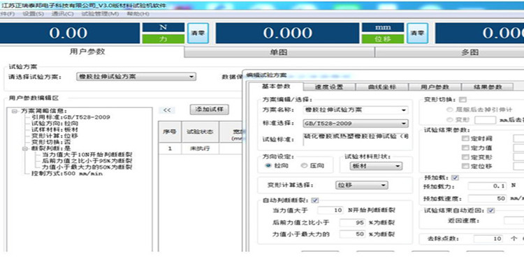 完全開放的試驗方法編輯界麵,力-時間、力-位移、位移-時間、抗拉強度-時間、伸長率-時間、應力-應變等曲線圖可任意切換;自動求算拉力、抗拉強度、屈服強度、伸長率、彈性模量等指標,試驗報告可導入Word或Excel,多次試驗結果可同時展現,一張報表可展現多條試驗曲線,便於用戶對比。